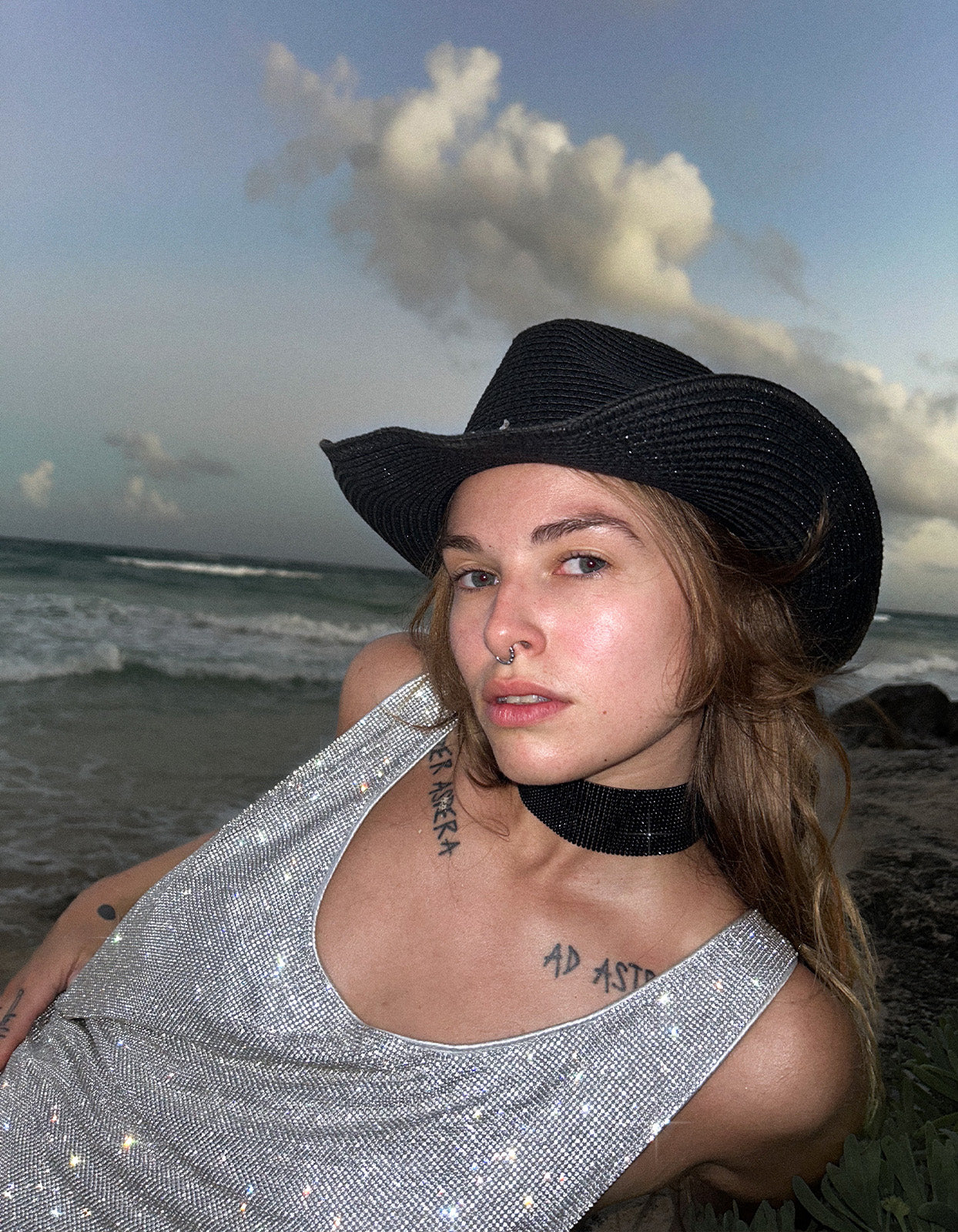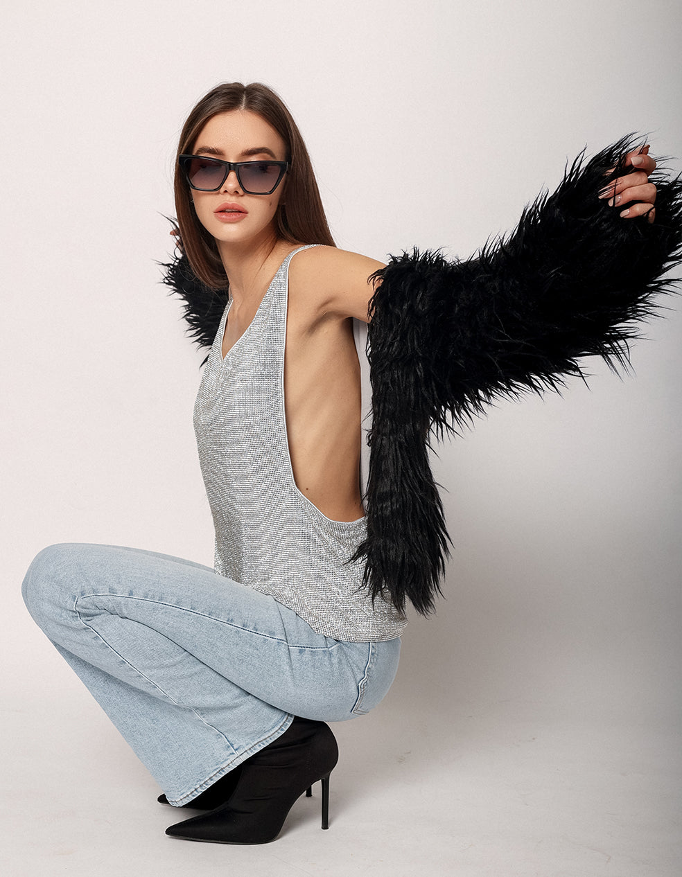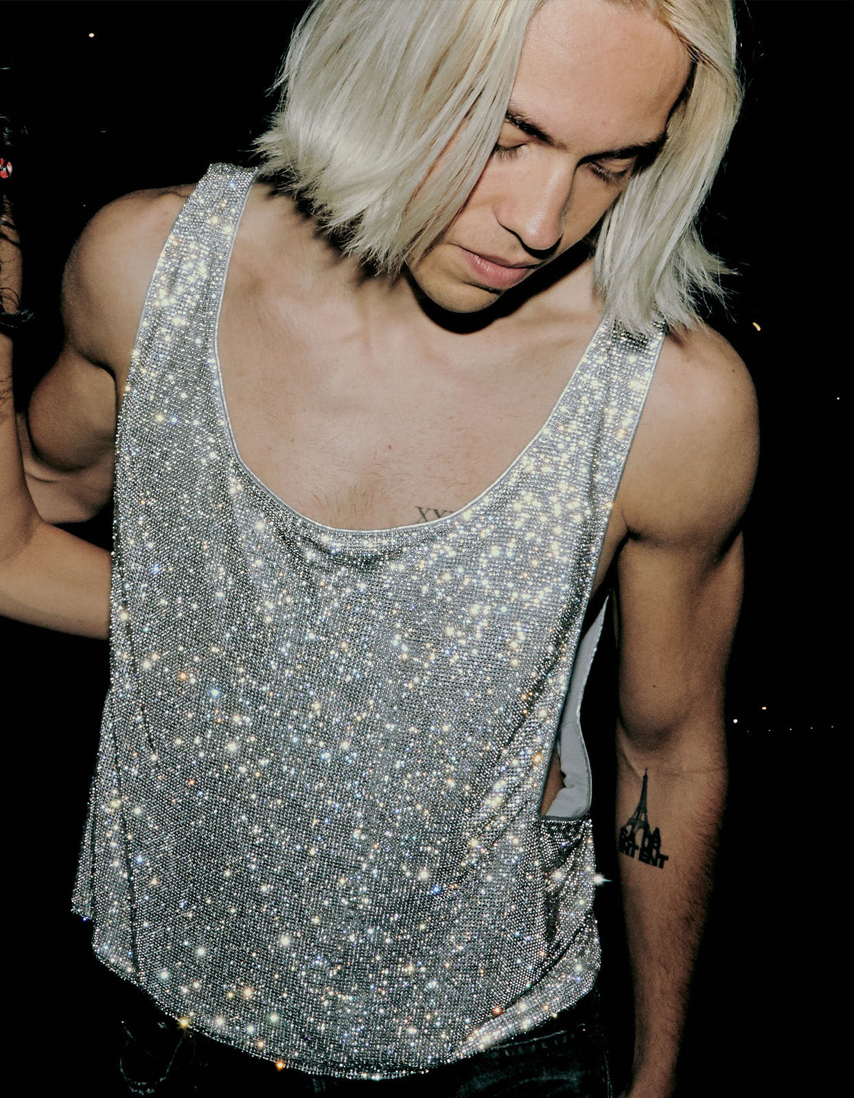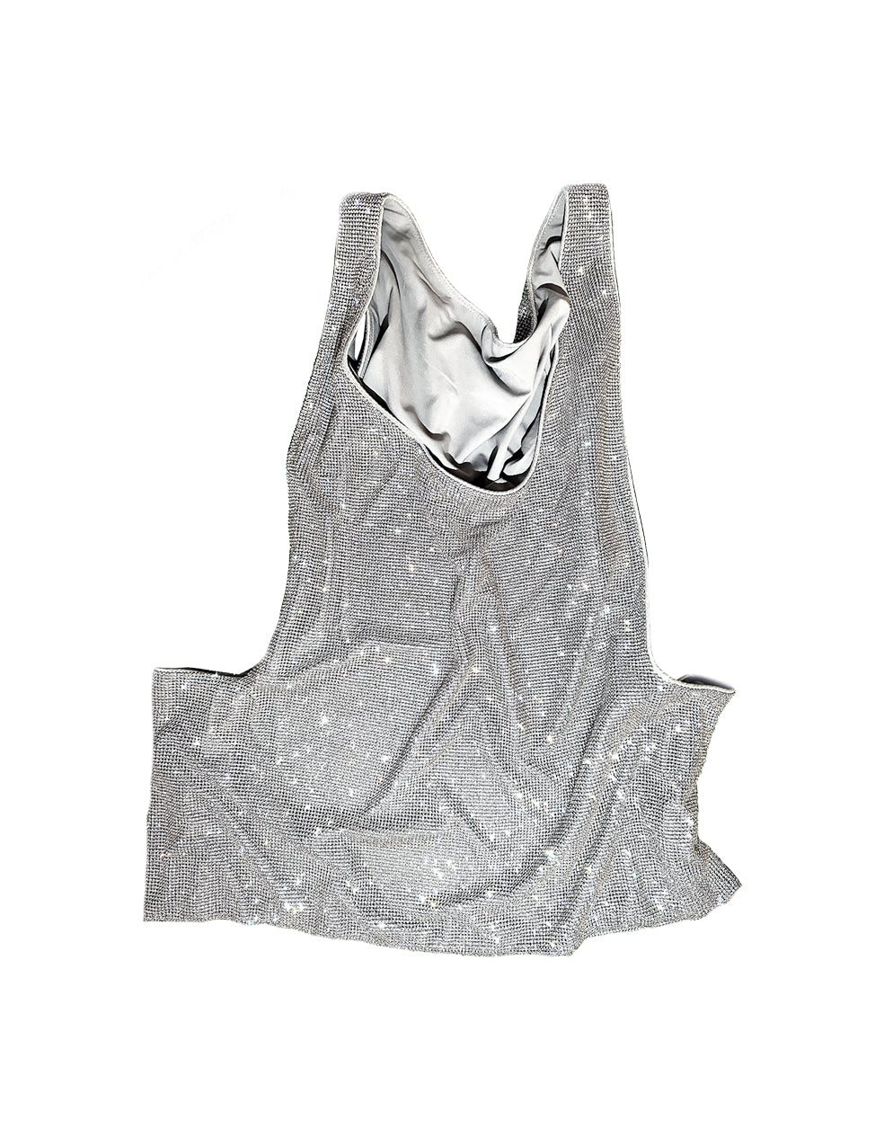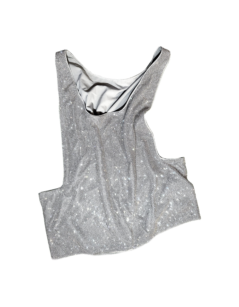 Hand-crafted oversize tank top, embellished with crystals, carefully lined for your comfort.